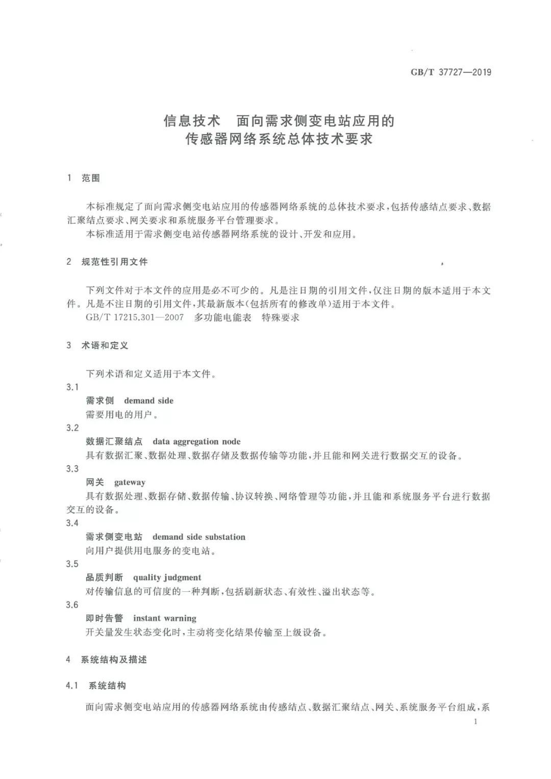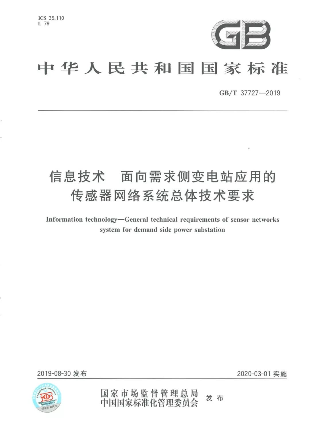 近日,由天津安捷物聯(lián)科技股份有限公司主導(dǎo)制定的《信息技術(shù) 面向需求側(cè)變電站應(yīng)用的傳感器網(wǎng)絡(luò)系統(tǒng)總體技術(shù)要求》已由國家市場監(jiān)督管理總局和中國國家標準化管理委員會納入國家標準,標準編號為:GB-T 37727-2019。該標準于2019年8月30日發(fā)布,將于2020年3月1日開始實施。